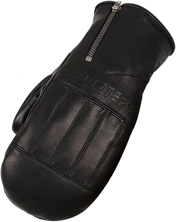 Harssidanzar Winter leather Ski Mittens Goatskin Thermal Waterproof Snowboarding Gloves For Men Women KM065US,Black,Size XL